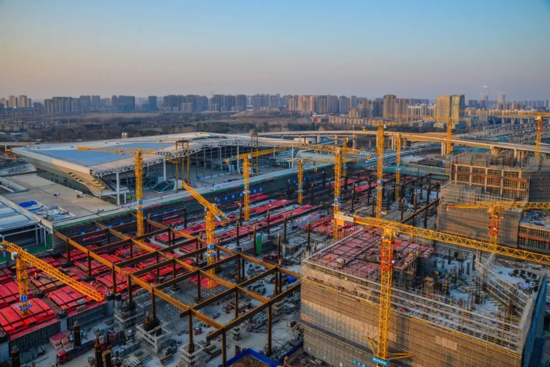 ⭐ 上海东站:东方枢纽上海东站地下工程中心岛底板已全部完成,正进行地下室结构施工,地下一层夹层与地面层结构板施工完成约70%。地上工程现场各项准备工作已完成。今年将重点推进站场区域地上工程盖板、高架候车层等建设。东方枢纽上海东站位于上海市浦东新区祝桥镇,是沪苏通铁路太仓至四团段新建车站。车站距离上海浦东国际机场T1航站楼约5公里,总建筑面积约138.7万平方米,站场规模为15台30线,建成后将形成集国家铁路、市域铁路、城市轨道交通及机场捷运等交通功能于一体的大型综合交通枢纽。