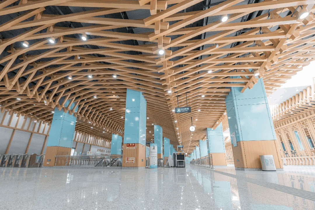 今天上午,宁波地铁4号线国际会议中心站开通。作为4号线延伸工程的一部分,东延段全长约2.51公里,设一站一区间,途经鄞州区东钱湖镇,起于4号线东钱湖站,终于国际会议中心站。该站设计延续了“海丝之路”主题,通过色彩、材质与空间的融合设计,构建连接城市历史与未来的文化地标。