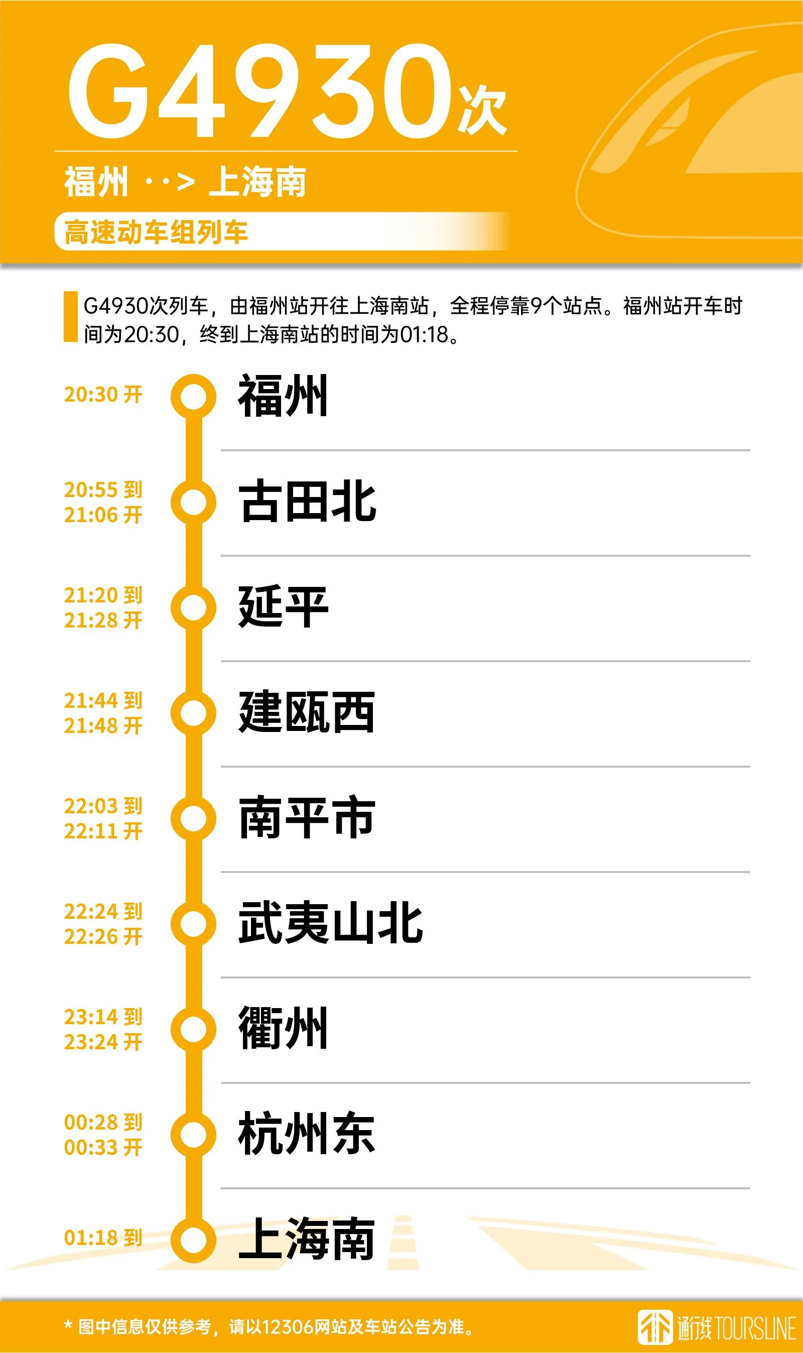 通通在附图中为大家整理了部分上海南站接发的红眼G车车次,仅供各位参考,各列车的开行时间等具体信息,请以12306网站及车站公告为准。