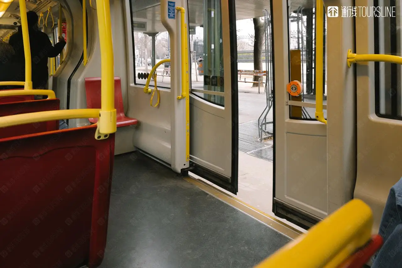 ULF最大的特色就写在名字里——Ultra Low Floor。如今100%低地板有轨电车已经十分普及,然而传统车轴使得地板隆起难以避免。30年前来自奥地利本土的两家公司SGP和ELIN就从龙门吊获取灵感,取消传统转向架,将承载和驱动结合在一起布置在车厢连接处,吊起车厢。带来超低地板的同时让ULF轮包更小,地板更平整,布局更舒适。此外,ULF原本还能进一步降低车身,让人可以直接从路面无障碍上车。不过,如今维也纳普遍都建了站台,这一功能在维护时被取消了。